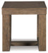 Esta mesa final de design torna moderna a forma quadrada. O perfil arrojado e em bloco é enriquecido com um estilo com efeito de prancha e um acabamento texturizado em marrom acinzentado para um visual moderno e contemporâneo e uma vibração calorosa e convidativa.