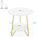 Round End Table With Hairpin Legs, 2 Tier For Living Room - White / Gold
