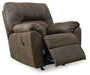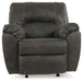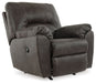 With plush cushions and angled pillow top arms, this rocker recliner takes comfort to a whole new level. Faux vintage leather requires minimal care, making this piece ideal in homes with children and pets. The seat reclines with the pull of a tab, putting total relaxation at your fingertips.