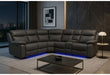 Upgrade to the U6026 Sectional with Speaker for an immersive home theater experience. This sectional includes the same right-facing console reclining loveseat, left-facing reclining loveseat, and wedge, but with the addition of built-in Bluetooth speakers in the console. Finished in Grey PU with LED lighting and manual reclining seats, it combines modern style, high-tech features, and unbeatable comfort.