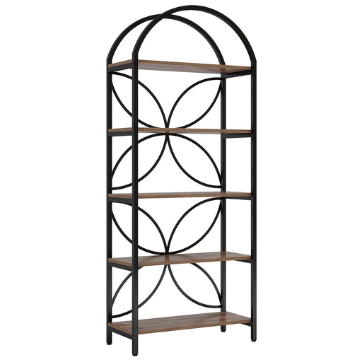 Tall 5 Tier Arched Bookshelf With Shelves For Living Room - Rustic Brown