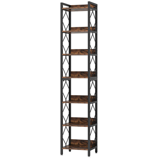 Tall 6 Tier Corner Shelf, Narrow Bookshelf Storage Rack, Square Etagere Display Stand - Rustic Brown