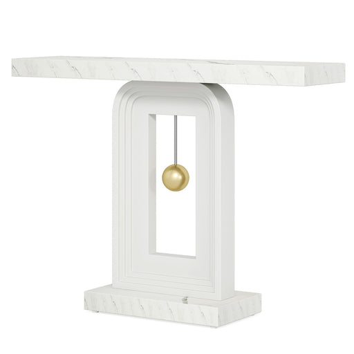 Home EssentialsModern Luxury Design: Striking white faux marble top with gold geometric metal base creates a bold focal point. Spacious Surface: 39.37" wide x 11...