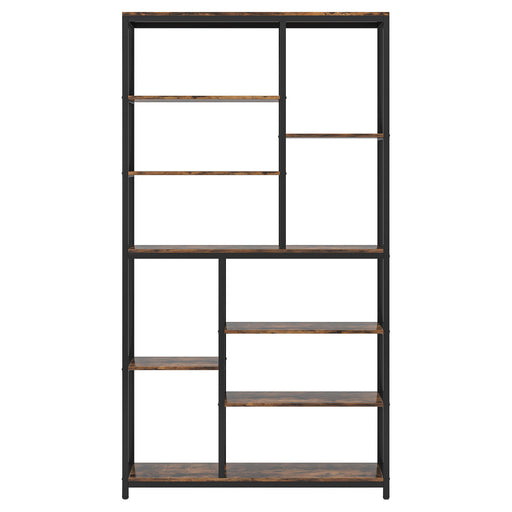 Extra Tall 8 Tier Staggered Etagere Bookcase With 8 Shelves Organizer For Living Room - Rustic Brown