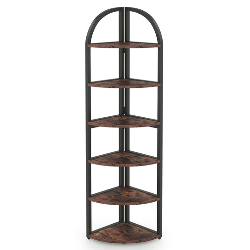 Tall 6 Tier Corner Shelf, Freestanding Bookshelf For Living Room - Rustic Brown