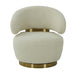 Plush, stylish, and bold, the Austin chair is an undeniably unique piece. Its soft and cozy faux shearling seat complemented with brushed gold finishes is timeless and inviting. This eye-catching chair will add a pop of style to any space.