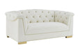 Offering a fresh and modern spin to a classic style, Inspire Me Home Decor and TOV proudly introduce the Farah loveseat. With its luscious velvet upholstery, unique tufted design on its rolled arms and hand applied nailhead trim, it will be the focal point of your living space. Available in several neutral color options to meet your home styling needs.