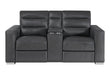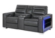 The Ylime Power Console Reclining Loveseat is designed for those who appreciate comfort and sophistication. Upholstered in charcoal PU with a sleek, modern silhouette, it features dual power-reclining seats that adjust effortlessly for personalized relaxation. The integrated center console provides convenient storage and cupholders, while the LED-lit bookcase arms create a dramatic, upscale glow. Whether you're enjoying an evening in or hosting friends, this loveseat offers the perfect balance of innovation, elegance, and everyday practicality.