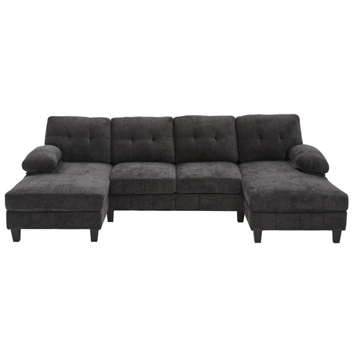 U-Shaped Sectional Sofa 103.5" Black Chenille Fabric Couch With Dual Chaise Lounges, Storage Pockets, Armrest Pillows