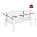 Modern Rectangular Coffee Table With Tempered Transparent Glass Top And Storage Shelf