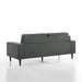 Meet the Vale 3-Seater Couch in Gray, a timeless blend of durability and comfort. Crafted with solid and manufactured wood frames reinforced with corner blocks, this couch ensures long-term reliability. Its cozy 100% polyester gray upholstery is both stylish and easy to maintain, while high-density full foam seat cushions, wrapped in Dacron, offer a plush and supportive seating experience. Sinuous springs further enhance resilience, guaranteeing enduring comfort. With extra-wide track arms, tight back cushions featuring a tailored center stitch, and elegant wood legs, the Vale Sofa effortlessly adapts to various design schemes, making it a versatile choice for any space.