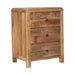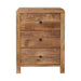 - Oak-ish Naya Nightstand - Featuring rounded corner edges, this naya nightstand is a staple in the bedroom with 3 large spacious drawers perfect for keeping things close before bedtime, it is constructed from 100% solid mango wood in a oak-ish finish and has shiny brass knobs for easy access into and from the drawers.