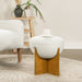Bali - Round Upholstered Ottoman With Natural Base - Ivory White