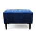 Mid Century Ottoman Velvet With Button Tufting With Birch Wood Legs - Navy Blue