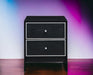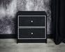 - Elegant Design: This accent table boasts a sleek black finish, complemented by silver-colored line accents on the front of its metal slide drawers, offering a touch of elegance and sophistication to its overall design.