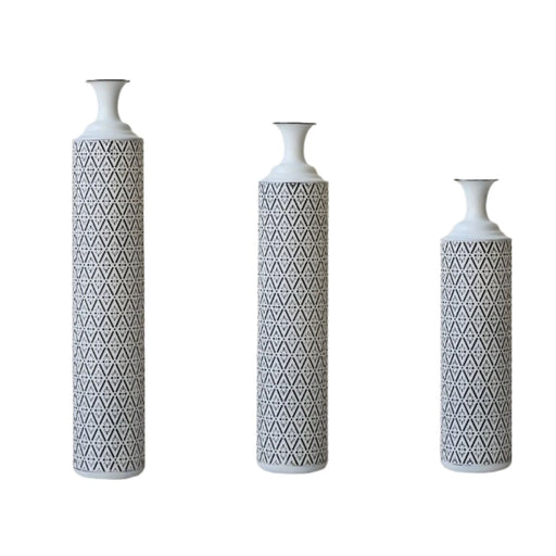 Modern Floor Vase Set Metal Vases With Geometric Pattern, 3 Piece Home Decor Set - White / Black