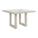 Introducing the Avalanche Counter Table, a striking blend of modern aesthetics and functionality. Featuring an 8MM glass insert and adorned with raised geometric patterns, it showcases contemporary elegance. The antique white finish enhances its timeless appeal, while the double U-shaped base provides stability and a stylish silhouette. A center square cut-out adds a unique touch to its design, perfect for creating a sophisticated dining atmosphere. Ideal for both casual meals and entertaining, this table combines practicality with a sleek, modern style that complements any dining space effortlessly. Elevate your home decor with the Avalanche Counter Table, where style meets substance beautifully.
