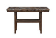 The D4355 Bar Table and Bar Stool with Bench Collection by Global Furniture offers a stylish and functional solution for casual dining and entertaining. The bar table features a sleek rectangular design with a convenient storage shelf underneath, perfect for keeping essentials close at hand. Finished in a warm brown tone faux marble tabletop, the dark brown legs and shelf add depth and contrast for a timeless look.