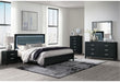 Elevate your bedside with the Reid Mirror from the Reid Bedroom Collection. With a modern design, glam hardware, and a sleek black wood finish, this mirror adds a touch of elegance to your bedroom.