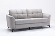 - The Callie sofa provides world-class comfort and style with a tufted cushion design and metal legs. A great look for formal gatherings yet perfect for the family as well. The comfortable fabric will keep guests satisfied and looking elegant while the metal legs will blend luxuriously into a wide selection of rugs.