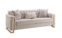 The Chloe Sofa redefines modern luxury with its sleek lines and high-end design. Adorned with striking gold detailing that adds a sophisticated flair, this sofa features plush, tufted upholstery in a sumptuous fabric, providing both elegance and comfort. Its contemporary silhouette and opulent accents make it a standout centerpiece in any living space, offering a perfect blend of style and sophistication.