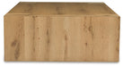 Rustic style. Refined design. This coffee table marries a substantial silhouette with natural materials. A glazed light finish enhances the unique character of its oak veneer. Loaded with both homespun charm and contemporary flair, this table effortlessly elevates casual aesthetics.