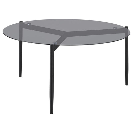 CoasterEverydayThis modern table features a sleek, tempered smoked glass top that adds sophistication to any space. Its sturdy metal base, finished in a powder-co...