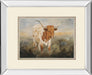 This charming framed print captures the essence of rustic life showcasing a majestic longhorn cattle in a serene field.