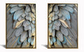 The "Gilded Plume Harmony Set" is a stunning hand-painted canvas duo that captures the delicate beauty of bird feathers with intricate detail and shimmering gold accents. Each piece is artistically embellished by hand, adding texture and depth that bring the natural elegance of these feathers to life. Encased in a sleek gold frame, this contemporary mixed media artwork arrives ready to display, making it a perfect statement for living rooms, bedrooms, or entryways. With every purchase, a meal is donated to a hungry child, blending artistry with meaningful social impact.