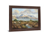 Step into a tranquil countryside scene with this beautifully framed artwork capturing a serene mountain vista dotted with grazing sheep. The soft hues of blue, green, and brown blend harmoniously to evoke a peaceful pastoral setting beneath a vast sky filled with gentle clouds. Encased in a rich brown frame with premium glass, this piece brings a touch of nature’s calm and timeless beauty into your living room, study, or den. Expertly crafted and ready to hang, it invites you to pause and appreciate the quiet elegance of rural life and majestic landscapes.