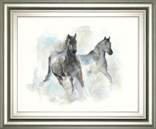 Classy LivingExperience the graceful energy of two horses captured in soft watercolor strokes that blend seamlessly into a misty background. This piece evokes a...