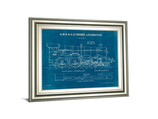 Locomotive Blueprint I By Wild Apple Portfolio - Framed Print Wall Art - Blue