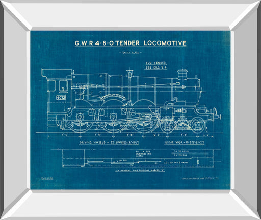Locomotive Blueprint I By Wild Apple Portfolio - Mirror Framed Print Wall Art - Blue