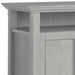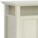 - Transitional design includes tapered legs, panel framed door fronts, and antique bronze round decorative knobs