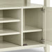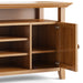 - Features two (2) side doors open to storage areas with two adjustable shelves and a central area with two (2) adjustable shelves and a top open shelf for your media devices.
