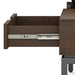 - Features split lift up top with storage area and one (1) drawer with full extension ball bearing drawer glides, Notched wood drawer pull