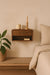 Curved Wall Mounted Bedside Table With Open Slot - Caramel