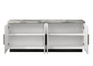 - Transform your space into a haven of style and sophistication with the Matilda Cabinet Console Table. Crafted to perfection, this piece showcases a faux white marble tabletop that radiates refinement and luxury. With a keen eye for practicality, the console table features an adjustable shelf concealed behind four doors, offering customizable storage solutions to accommodate your needs. Contrasting against the pristine white marble, the sleek black base adds a touch of modern flair, creating a captivating aesthetic that demands attention. Whether adorning your entryway, living room, or dining area, the Matilda promises to elevate your interior design with its impeccable craftsmanship and timeless appeal.