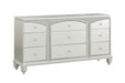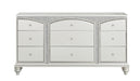 • Elegant Design: The Maverick Platinum Finish Dresser combines elegance and functionality, featuring nine spacious drawers ideal for ample storage. Its sophisticated arched top drawer adds a refined touch to its overall design.