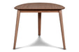 The Oscar Mid-Century Modern Small Dining Table is a stylish and practical solution for compact spaces. Crafted from a combination of solid Rubberwood, this corner dining table is built to last, ensuring durability and longevity. The table features a clean, clear finish that highlights the natural beauty and grain patterns of the wood, adding a sophisticated touch to your decor. Emphasizing clean lines, organic curves, and functional design, the Oscar Dining Collection embodies the timeless appeal of mid-century modern style. This small dining table is designed to fit perfectly into kitchen nooks, small dining areas, or even serve as an accent table in an entry hall or living room. Ideal for two-person dining, it balances form and function, creating an aesthetically pleasing and practical living space. The Oscar Mid-Century Modern Small Dining Table is a versatile and elegant addition to any home, providing both style and utility in a compact design.
