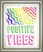 Infuse your surroundings with an uplifting spirit through this vibrant "Positive Vibes" framed wall art. Featuring a playful cascade of rainbow-colored wavy lines above bold, cheerful typography, this piece radiates optimism and joy. The elegant silver frame with crystal-clear glass enhances its contemporary charm, making it a perfect addition to living rooms, offices, or bedrooms. Crafted with premium materials and expert attention to detail, this ready-to-hang artwork effortlessly blends modern style with heartfelt inspiration, inviting positivity into any space it adorns.