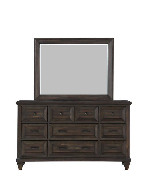 The Sevilla Two-Piece Dresser and Mirror Set in walnut is a masterful combination of timeless craftsmanship and versatile design, making it a striking addition to any bedroom. Skillfully crafted from solid Acacia wood and enhanced with Acacia veneers, this set boasts a rich, hand-distressed walnut finish that adds a vintage charm to its traditional elegance and rustic appeal. The dresser features spacious drawers with masterful dovetail joinery, smooth interiors for snag-free storage, and precision-engineered, full-extension glides for effortless functionality. Thoughtful details like velvet-lined top drawers and a removable jewelry caddy offer both elegance and practicality. The accompanying mirror, framed with extra-wide picture frame moldings and low-distortion beveled glass, provides a flawless reflection, completing the set with a touch of sophistication. Perfectly balancing style and durability, this dresser and mirror set serves as a captivating focal point in any classic, cozy, or historically inspired space.