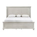The Silver Sands Upholstered Panel Bed is a perfect blend of durability and style, making it a standout choice for any bedroom. Constructed from solid pine, manufactured woods, and oak wood veneers, this bed offers a robust and stable foundation. Its versatile design showcases a transitional style that merges clean, simple lines with a rustic wood finish, creating a calm and inviting atmosphere. The misty gray finish is meticulously hand-applied in multiple steps, resulting in a soft, weathered look that highlights the natural grain and mineral patterns of the wood. The bed''s elegant design features a raised panel footboard and a plushly padded headboard, complemented by traditional hardware and decorative dentil moldings for a touch of farmhouse charm. The sophisticated appeal of the nicely shaped crown moldings completes the look. Choose the Silver Sands Upholstered Panel Bed for a combination of quality construction and timeless design that enhances any bedroom decor.