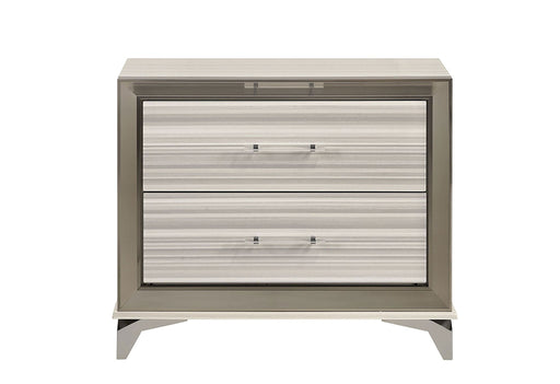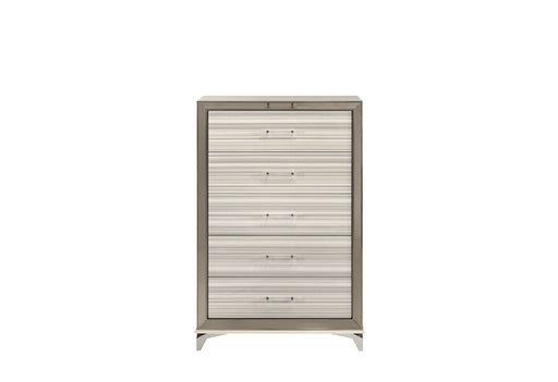 The Zambrano White Collection exudes sophistication and modern charm. Its sleek design, pristine white finish, and polished chrome accents create a luxurious, inviting atmosphere. The spacious storage and built-in LED lights add functionality, making it a perfect blend of style and practicality. A stunning addition to any contemporary bedroom, the Zambrano is a must-have for those seeking both elegance and comfort.